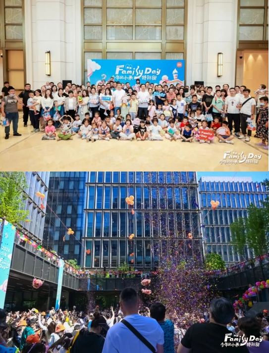 Family Day作為小米最悠久節日,始終致力于讓每一位員工家屬近距離了解小米職場環境,領略其獨特企業文化。本期活動中旅會展團隊深入挖掘小米核心企業價值觀,將甜蜜與未來美好生活元素緊密連接,精心打造“今年的小米特別甜”主題,以專業優質策劃能力及周到細致服務助力活動“甜蜜開場”。北京科技園內漫天“米語”糖果紛紛灑落,健康小課堂、公益手語課、互動手作、小米汽車工廠卡丁車競賽等活動讓千名小米人與家人共同享受愜意時光。而其他城市園區同步開展的豐富精彩親子游樂項目更是真正將提升員工幸福感與滿意度理念落到了實處,充滿趣味性的沉浸式體驗獲得了參與者們的高度贊許。